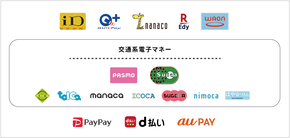 各種電子マネー決済に対応(交通系/流通系/ID他、QR決済)